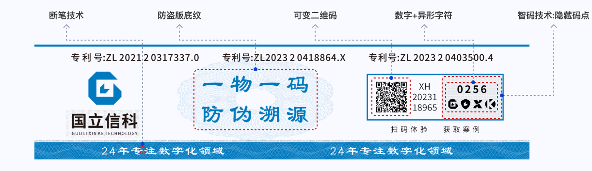 多重防伪性能可靠,其防伪信息既包括防伪码的数字信息,也包括各种防伪码的颜色信息,以及材料的特性信息