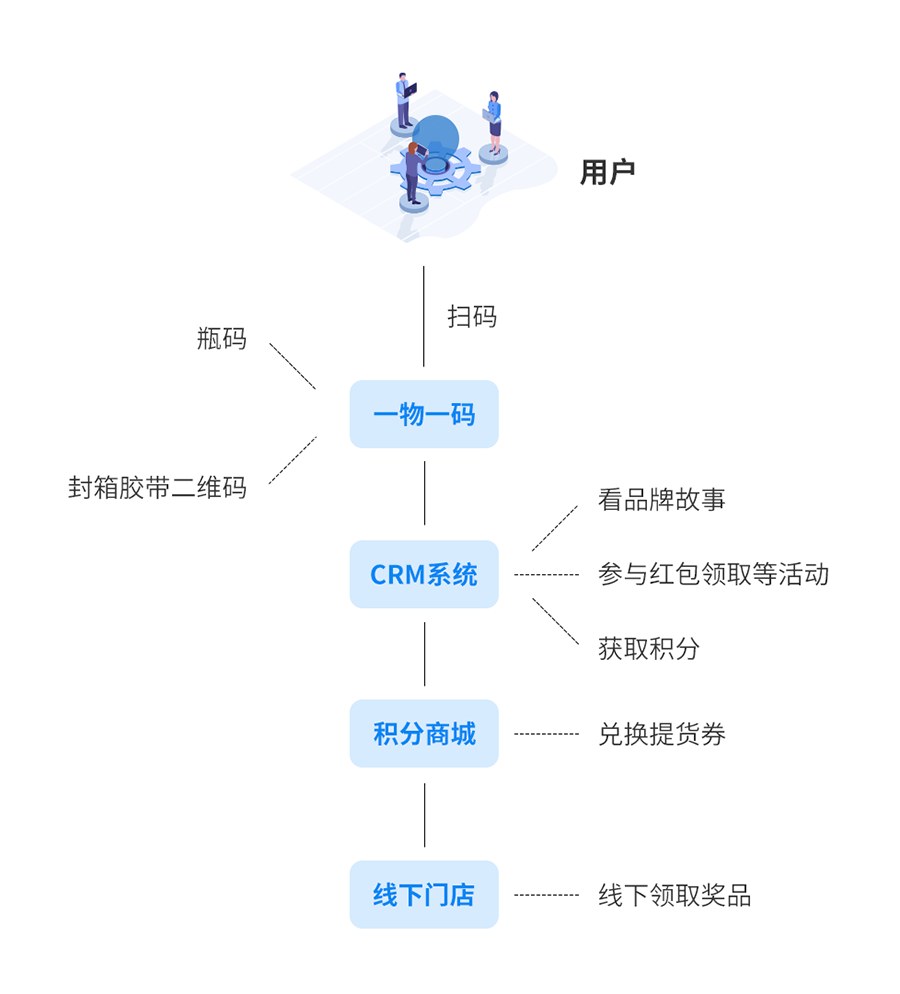 可定制开发或对接CRM系统/积分商城,链接企业公众号/产品官网等,通过私域流量,对终端消费者进行精准二次营销(拉新促活转化、粉丝以老带新、裂变营销等),并对营销结果进行分析,形成闭环;