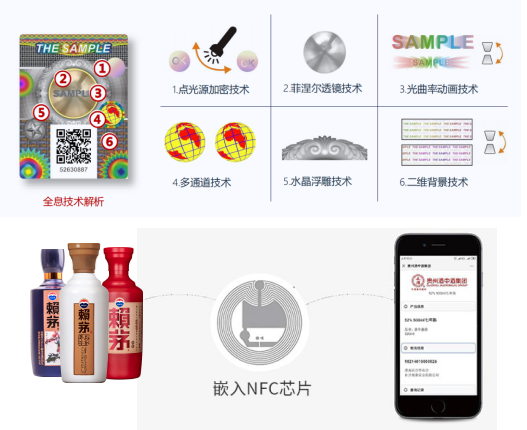 麒云智能识别防伪技术通过复合集成各种传统防伪技术,以达到难以伪造、容易鉴别两大特征,对每一件产品赋予唯一的、不可伪造、不可否认的数字身份信息,具有极高的防伪性能,可以收集和跟踪产品的生产、仓储、物流、销售终端等各个环节的数据。